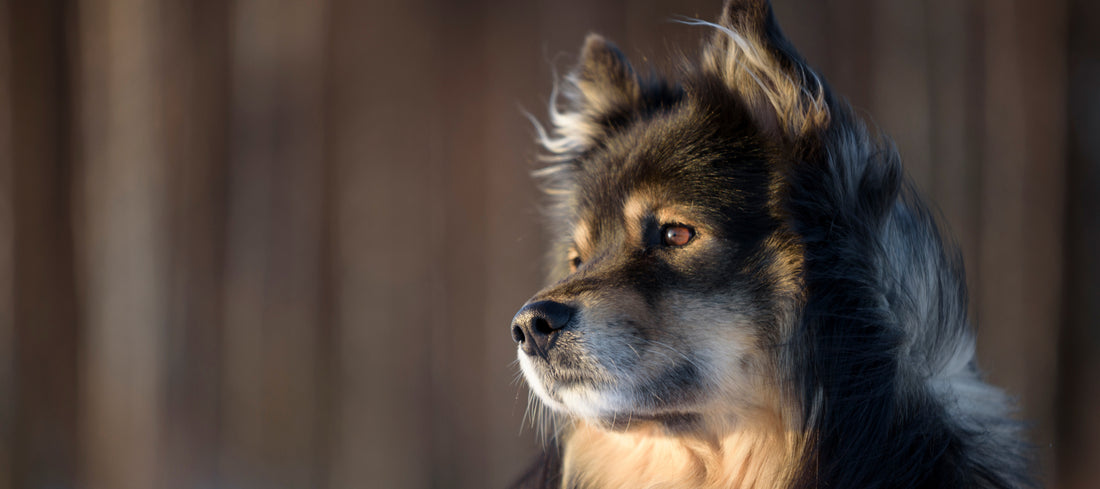 These dogs are powerfully built and boast dense double coats to protect them from the cold. They have pricked, mobile ears and elegant muzzles. Coat colours include, black, cream, tan, white and grey, brown and white, plus brown and cream. A single colour should predominate. Profuse hair around the head and neck creates the appearance of a mane in most males. Many Finnish Lapphunds have distinctive facial markings which give the appearance of spectacles. Their tails are carried curved over their backs and are covered with long hair.