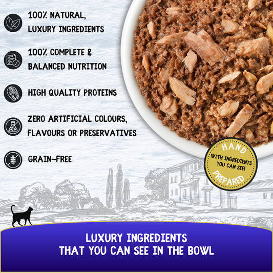 COOKHOUSE 100% Natural & Complete Luxury Wet Cat Food - 36 x 70g Pouches - Tuna Loin/Tuna Loin with Sardine - Fillets in Jelly