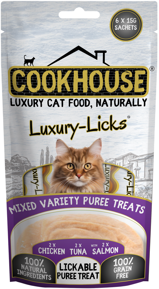 COOKHOUSE Luxury Cat Licks Puree - Mixed 6 x15g - Case of 8