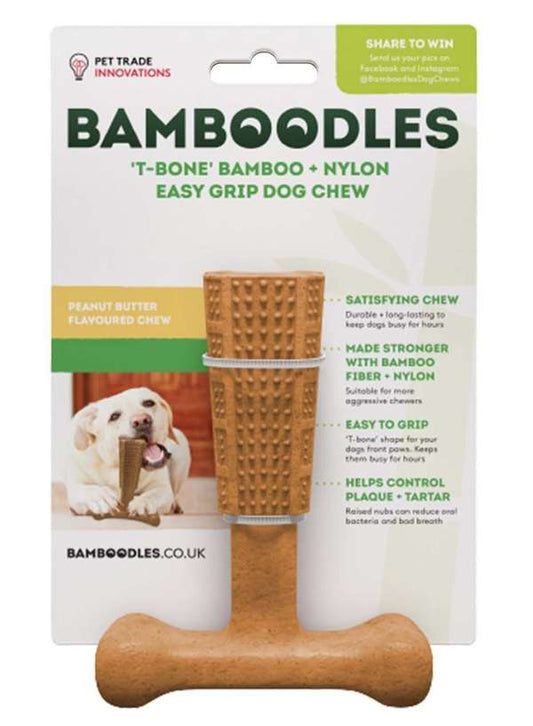 Bamboodles T-Bone Chew Toy For Dogs Peanut Butter Flavour