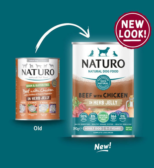 Naturo Adult Dog Grain & Gluten Free Beef with Chicken in a Herb Jelly 12x 390g