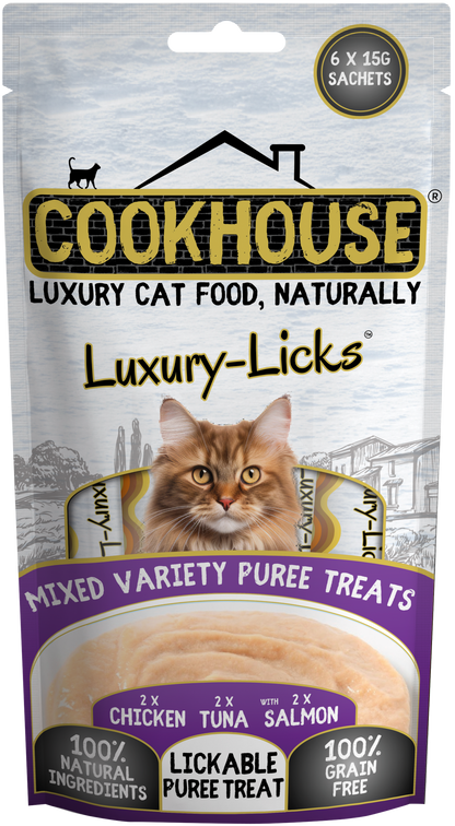 COOKHOUSE Luxury Cat Licks Puree - Mixed 6 x15g - Case of 8