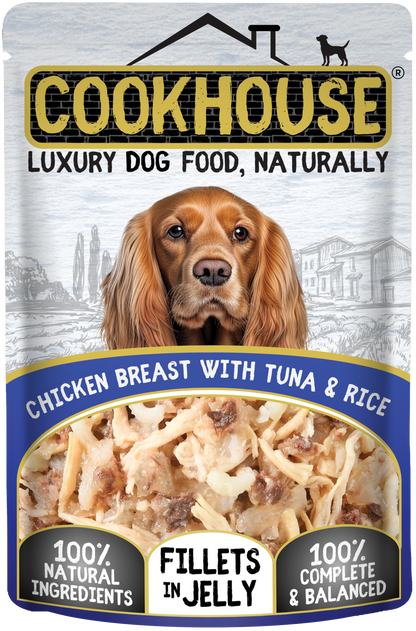 COOKHOUSE Luxury Dog Pouch Fillets in Jelly Chicken, Tuna & Rice 15 x 100g