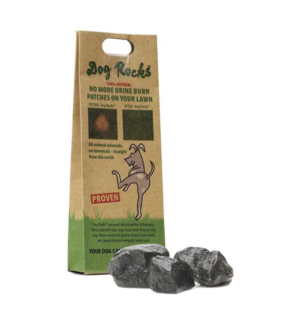 Dog Rocks are the natural and convenient way to keep your lawn looking beautiful and healthy. These 100% natural, Australian-sourced rocks can be simply added to your dog's water bowl to help reduce pet urine burn marks on your lawn, grass, and hedges. One pack of Dog Rocks is effective for up to 2 months, and won't affect the pH balance of your pet's urine. Dog Rocks are safe for your dog and other household pets and are easy to use - simply rinse the rocks before adding to your pet's water bowl and let them sit for 10 hours before they become effective. For best results, replace the rocks every 2 months and make sure your dog's bowl is their main water supply. With Dog Rocks, you should start to notice a change in your lawn's appearance within 5 weeks, and no new burn patches should appear.