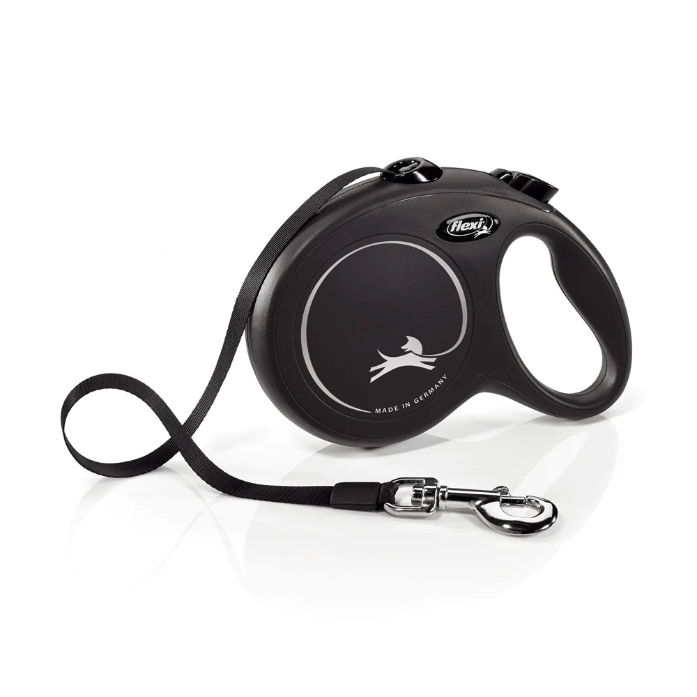 New Classic combines modern features and accessories with the traditional advantages of a flexi leash. Featuring a stylish design and an ergonomic grip handle. It can be accessorized with Multi Box and LED Lighting System (for size S and up). With its innovative Short-Stop Braking System, the New Classic creates a high level of safety and comfort during walks.