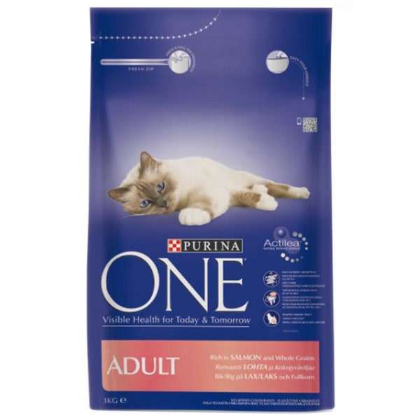 Purina ONE Adult Cat Rich in Salmon & Whole Grains Dry food 800g. Purina ONE Adult is specifically formulated to meet the complete nutritional needs of Adult cats (aged 1-7 years) who need a complete and balanced diet to help stay in the best of health. ACTILEA is a unique nutritional formula within PURINA ONE designed to help keep your cat's natural defences strong and to deliver a wave of positive effects to help support her health, so you can enjoy her visibly great condition knowing she's great on the inside too. Purina ONE with ACTILEA formula helps support your cat's healthy immune system today and tomorrow.