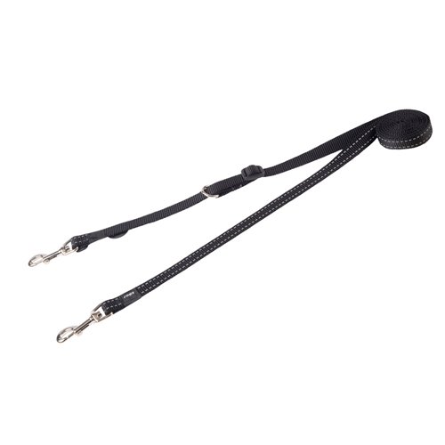Rogz Utility Multi Leads provides multiple adjustment points, two dog walking, a temporary post tie and a shoulder wrap-around. When used with a harness that has a front chest lead attachment, you can control your dog through Stop-Pull Steering. Strong components and webbing with highly reflective stitching enhance visibility and safety while a waste bag and accessory holder provide additional convenience.